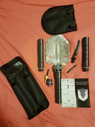 The shovel is high quality, made of strong steel. All its functions and accessories are included as described . Fast 3 days delivery to Hungary by DPD. The bag is poor quality only, no option to fix it on belt. Highly recommended seller and product.